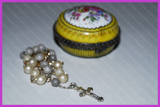 A alguns anos atráz, uma amiga me deu este tercinho dentro desta "caixinha" e desde então ando com isso na mala. Tornou-se mesmo uma espécie de amuleto...