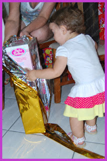 Temos também um sobrinho de anos e a Mel ficava muito atenta a olhar quando era ele a abrir presentes mas quando era os dela, colocava mão na massa como se já fizesse isso a anos! Muito muito legal ver a alegria e empolgação dela com os presentes...